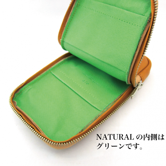 INGRASATO(シュリンク)を、内側にはビビッドカラーのピッグスキンを配色しました。
