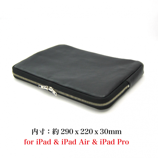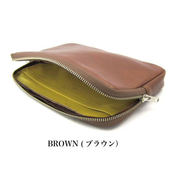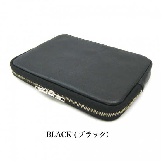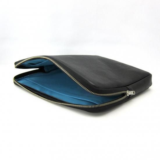 シンプルなクラッチバッグです。iPad,iPad Air や iPad Pro が収納できます。インナーポケットにはスマートフォン、電源アダプター、ケーブル、財布、名刺ケース、タバコ、カメラ、メガネなどいろんな物を収納して携帯できます。また収納物を傷つけないように、ジッパー内側をガードする革を付けました。素材は、外側にイタリア・サンタクローチェ地方のタンナー:アテナ社のバケッタレザー:
