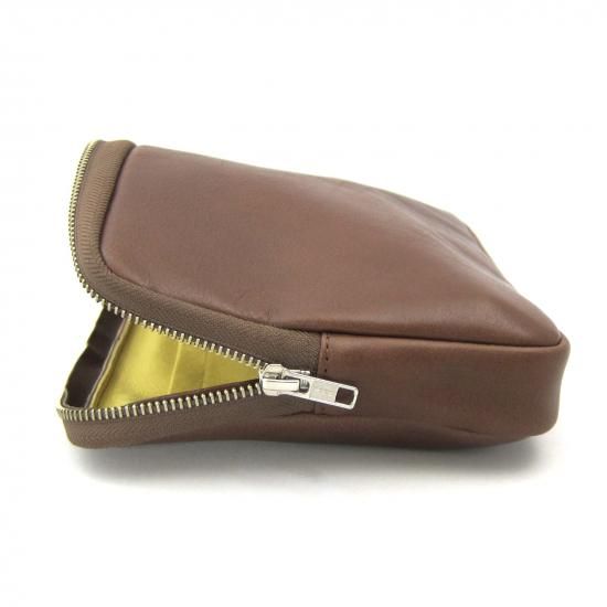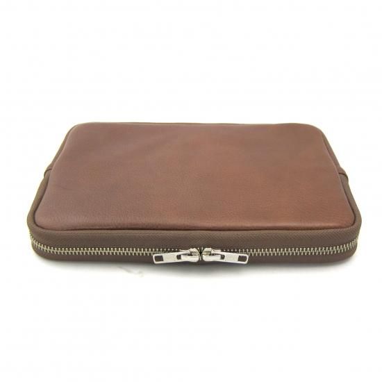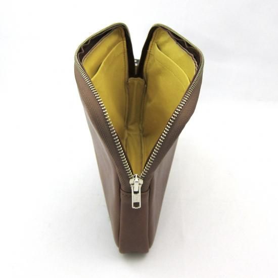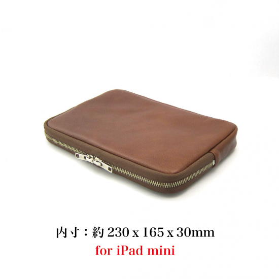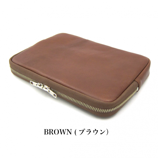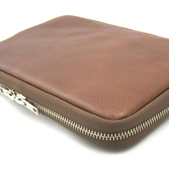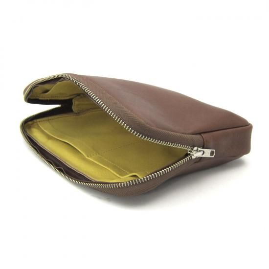 シンプルなクラッチバッグです。iPad mini が収納できます。インナーポケットにはスマートフォン、電源アダプター、ケーブル、財布、名刺ケース、タバコ、カメラ、メガネなどいろんな物を収納して携帯できます。また収納物を傷つけないように、ジッパー内側をガードする革を付けました。素材は、外側にイタリア・サンタクローチェ地方のタンナー:アテナ社のバケッタレザー: